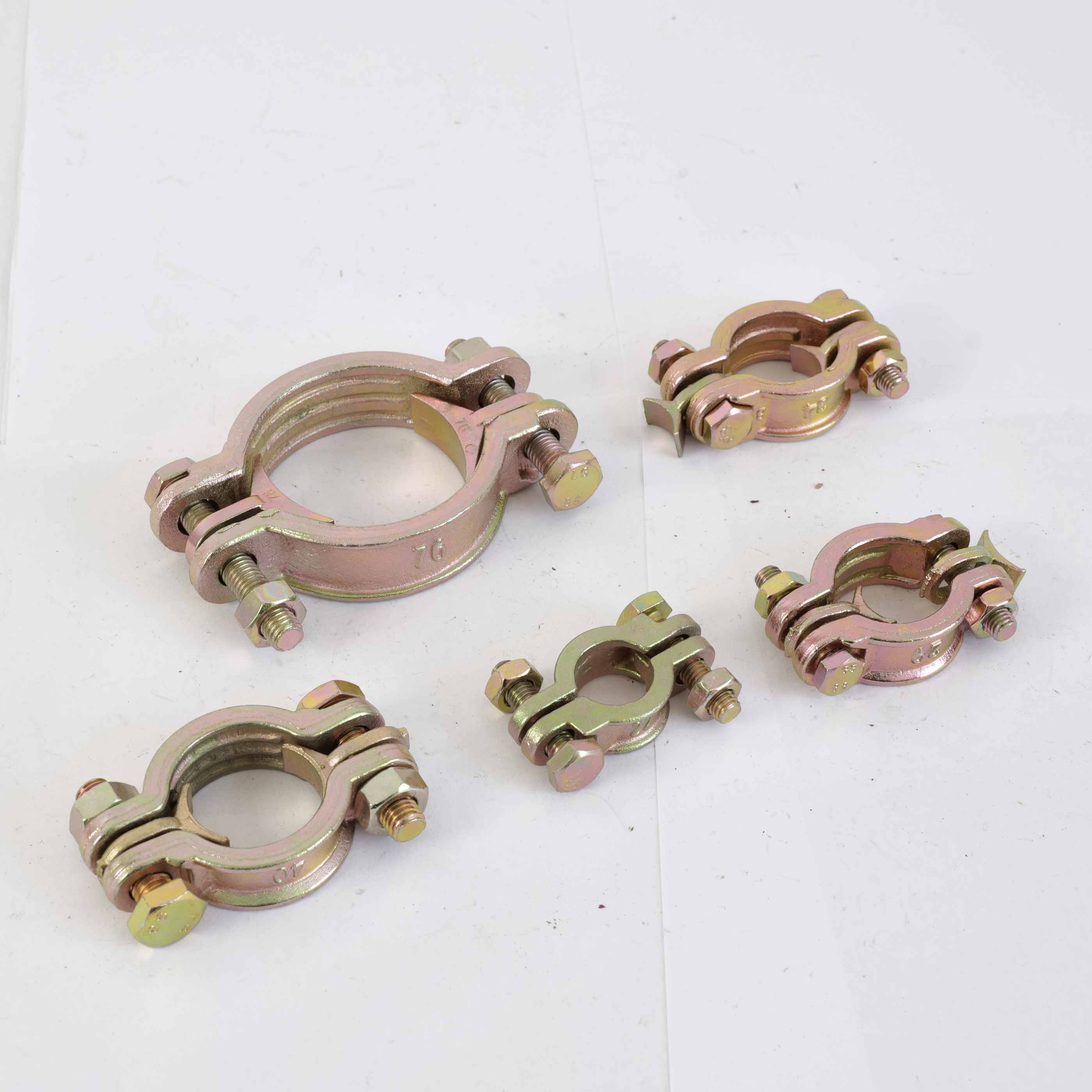 Die Das Material der Doppelbolzenklemme ist Carbon Stahl und Material Messing und Edelstahl sind ebenfalls erhältlich, die Technologie ist Präzisionsguss. Die Oberfläche ist verzinkt, silberfarben oder gelb.